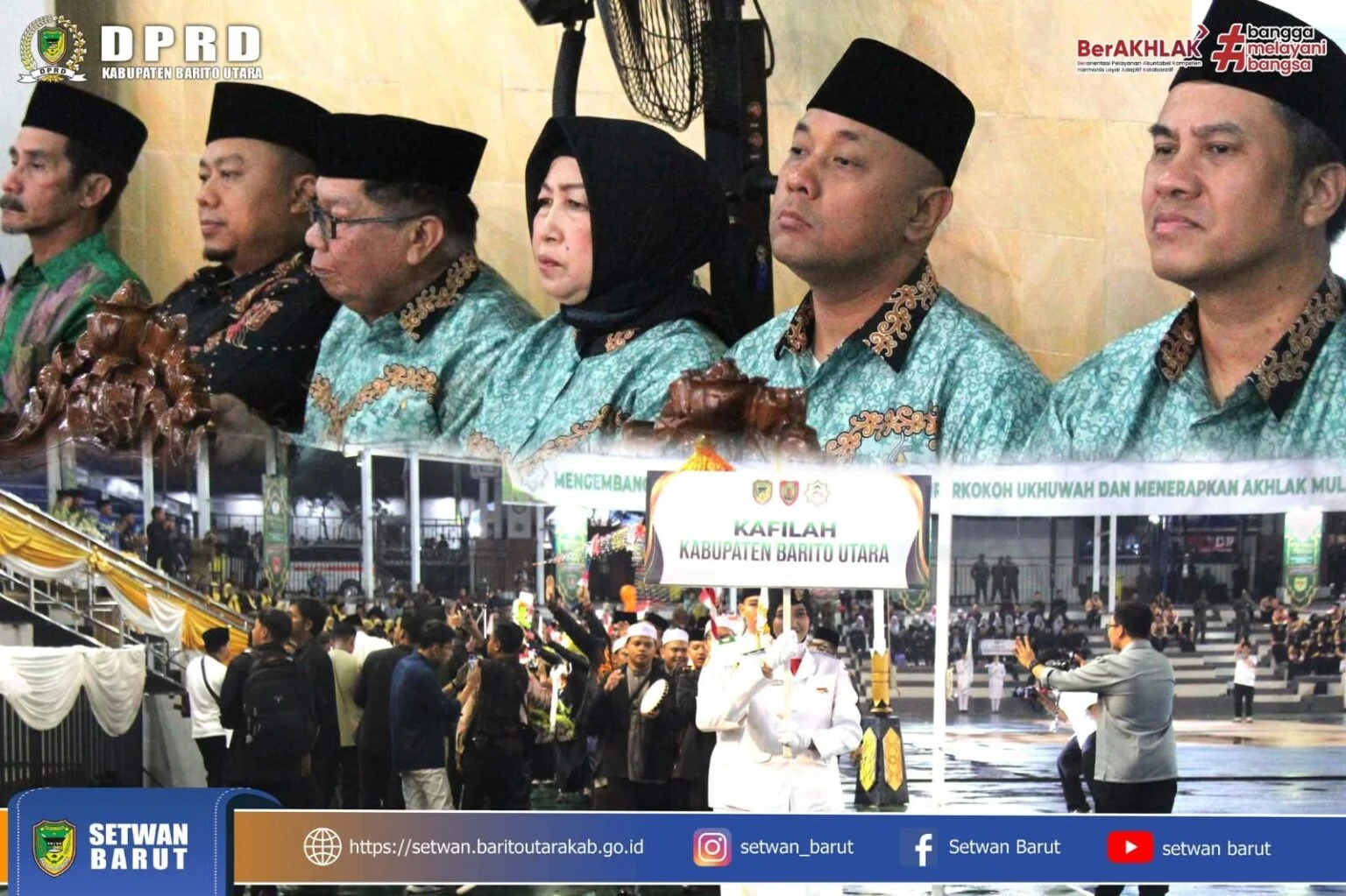 BARITO UTARA, SN – Ketua DPRD Kabupaten Barito Utara bersama jajaran menghadiri pembukaan Musabaqah Tilawatil Qur’an dan Hadits (MTQH) XXXIII Tingkat Provinsi Kalimantan Tengah di Muara Teweh.